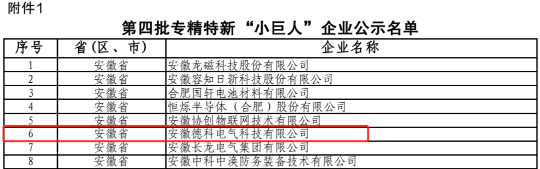 近日,經(jīng)國家工業(yè)和信息化部的審核批準,安徽省經(jīng)濟和信息化廳發(fā)布《關于安徽省第四批專精特新“小巨人”企業(yè)名單的公示》,安徽德科電氣科技有限公司榮膺入選,榮獲國家級專精特新“小巨人”稱號。