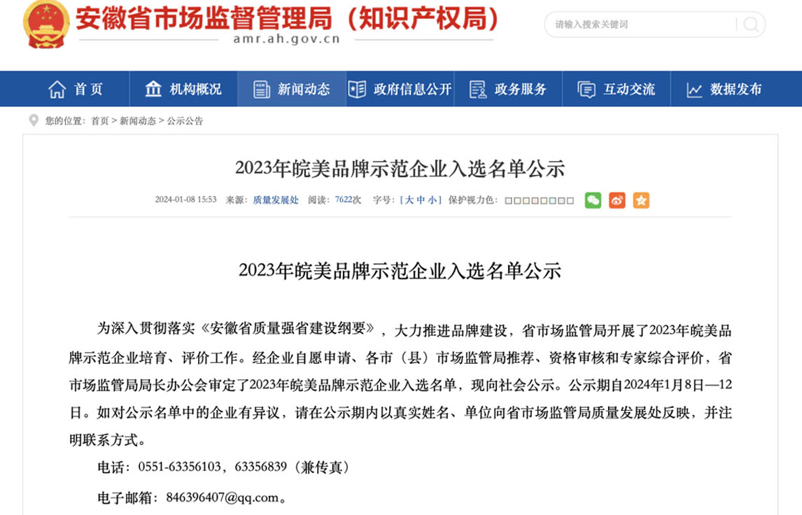 國(guó)內(nèi)外市場(chǎng),提升品牌競(jìng)爭(zhēng)力和影響力,發(fā)揮“品牌示范企業(yè)”的帶頭作用,為美好安徽建設(shè)貢獻(xiàn)更多力量!
